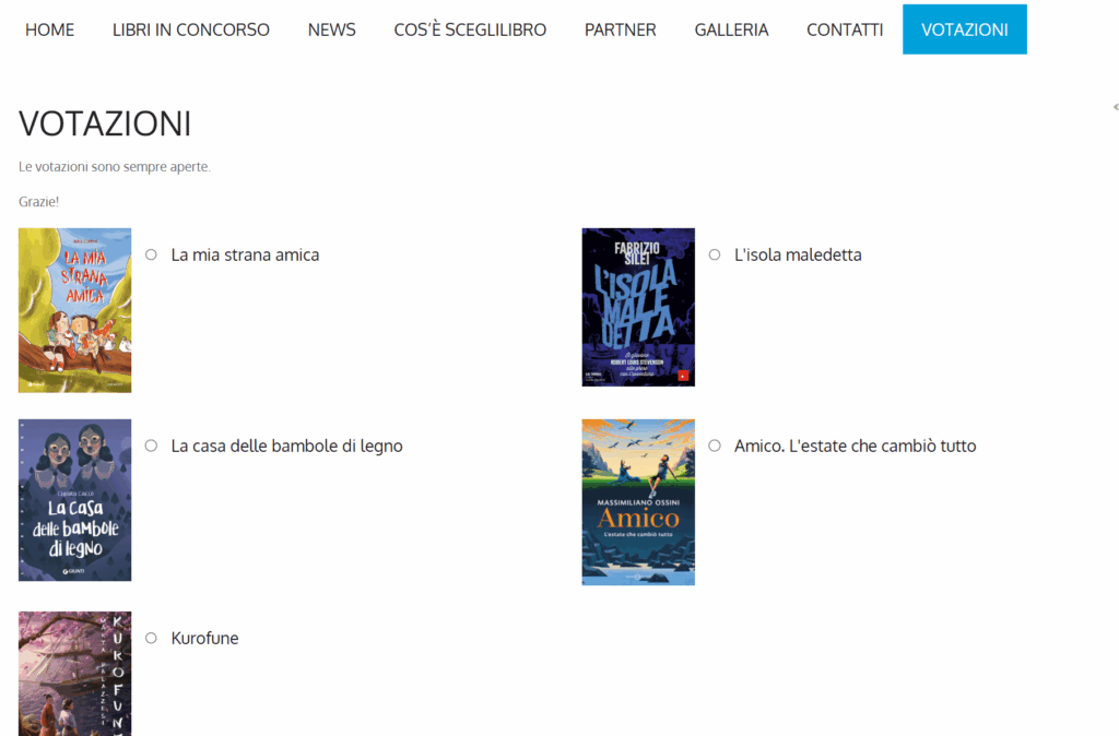 sul tasto troverete le cover dei 5 libri e potete selezionare e votare il libro preferito. Ci sarà